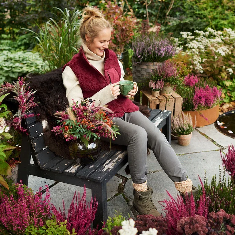 Vill du skapa en vacker höstplantering i krukor och balkonglådor? Då kan du kombinera din ljung med andra höstväxter som prydnadskål, murgröna, höstaster, cyklamen och silvergirlang. Ett tips är att också dekorera med vasstrån, tallkvistar och kottar. Det gör att din höstplantering får ett ombonat och välkomnande intryck.